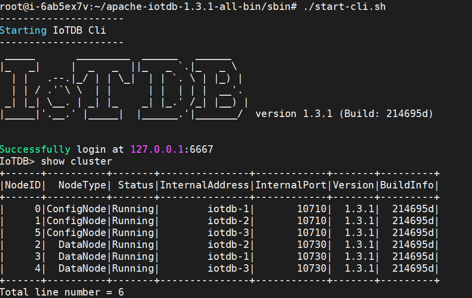 ./sbin/stop-standalone.sh #先停止confignode和datanode ./sbin/start-confignode.sh -d #启动confignode ./sbin/start-datanode.sh -d #启动datanode