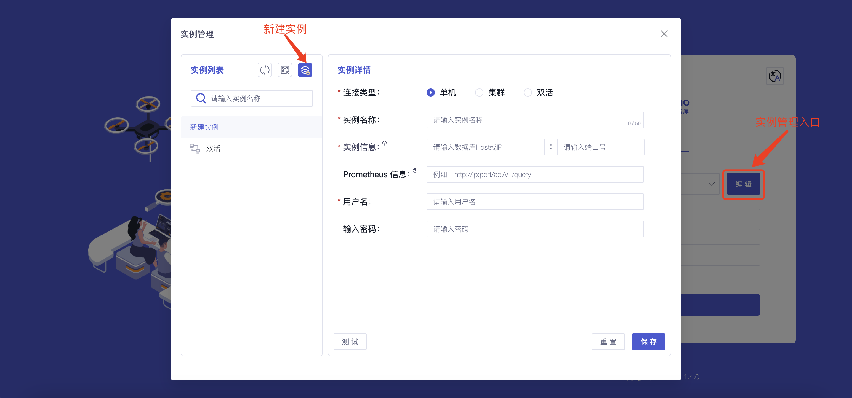 实例名称 | 是 | 您可根据名称对不同实例进行区分,最多输入 50 个字符 | - |